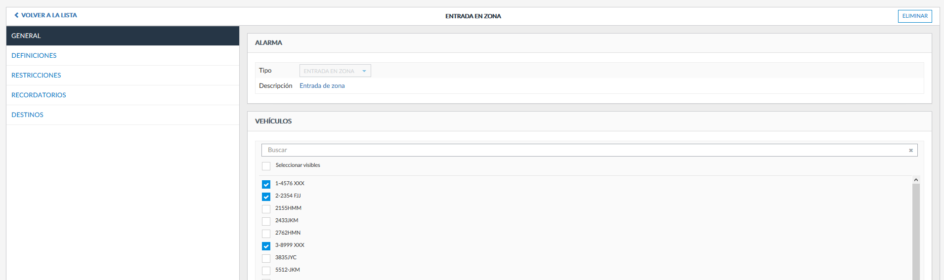 Despues accederíamos al apartado ALARMAS: