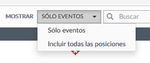 Cuando entremos en el apartado EVENTOS, por defecto sólo veremos los eventos importantes, pero no todas las posiciones. Para ver todas, tendremos que ir a la opción MOSTRAR, en la parte superior a la izquierda. Si clickamos se nos abrirá un desplegable con dos opciones: