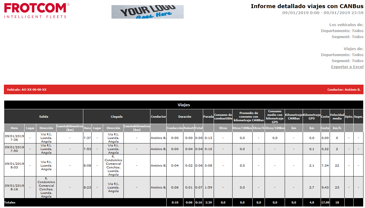 Si a sus vehículo(s) se le ha instalado un dispositivo que lea datos de CANBUS, este informe le proporcionará esos datos extra que el anterior no tiene, como el consumo de combustible.