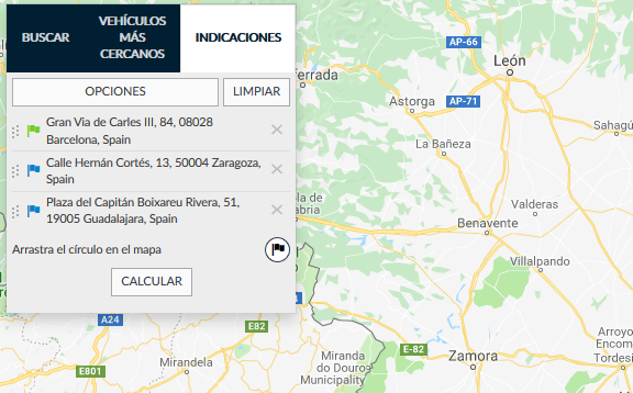 Para ello deberemos ir al Mapa, en la parte dónde aparecen los vehículos, marcaremos la opción DIRECCIONES: